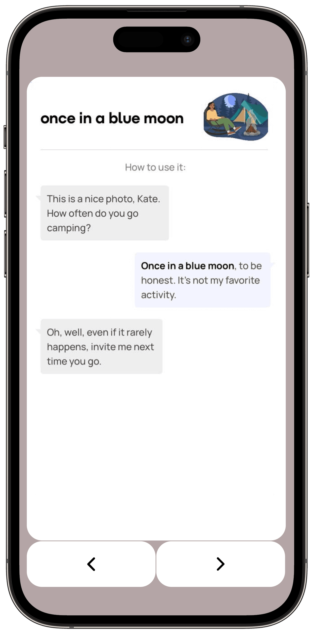Never forget new words and grammar rules thanks to a combination of practice and associations. Get illustrations for everything you learn to remember English with ease.