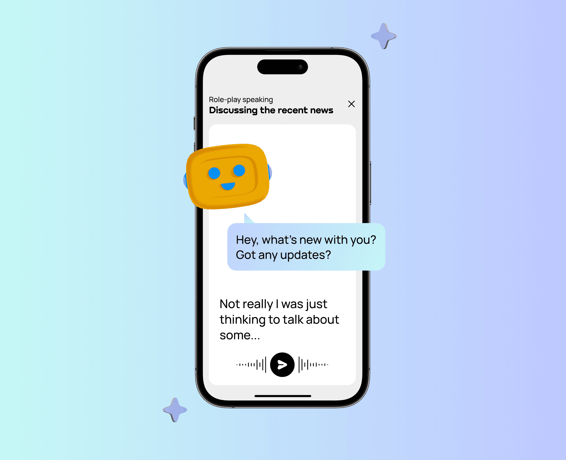 Vous souhaitez pratiquer votre espagnol et gagner en aisance à l'oral ? Avec le tuteur IA espagnol de Promova, vous pouvez jouer des scénarios de la vie réelle dans un environnement sans pression et recevoir un retour instantané et détaillé.