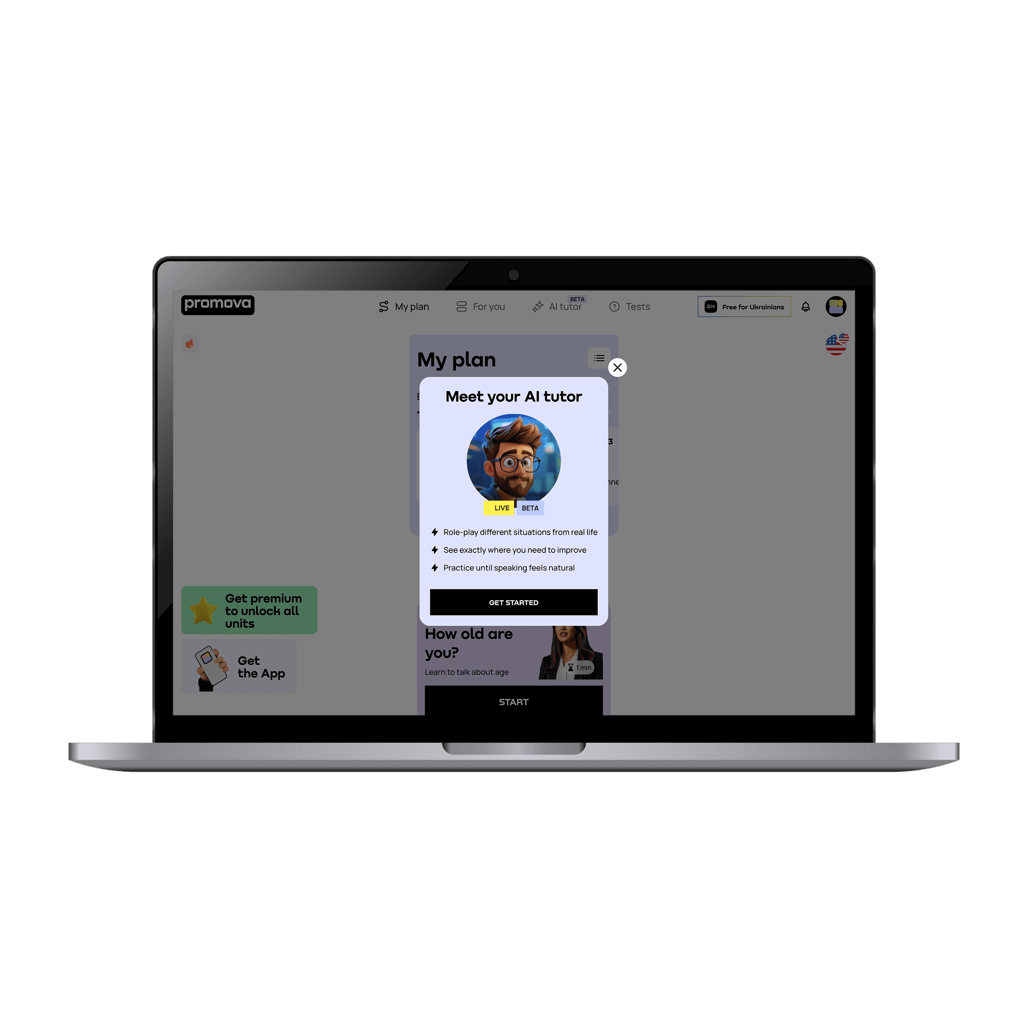 For full access to advanced features, unlimited practice, and personalized lessons with Promova AI Tutor, you need to upgrade to Premium subscriptions.