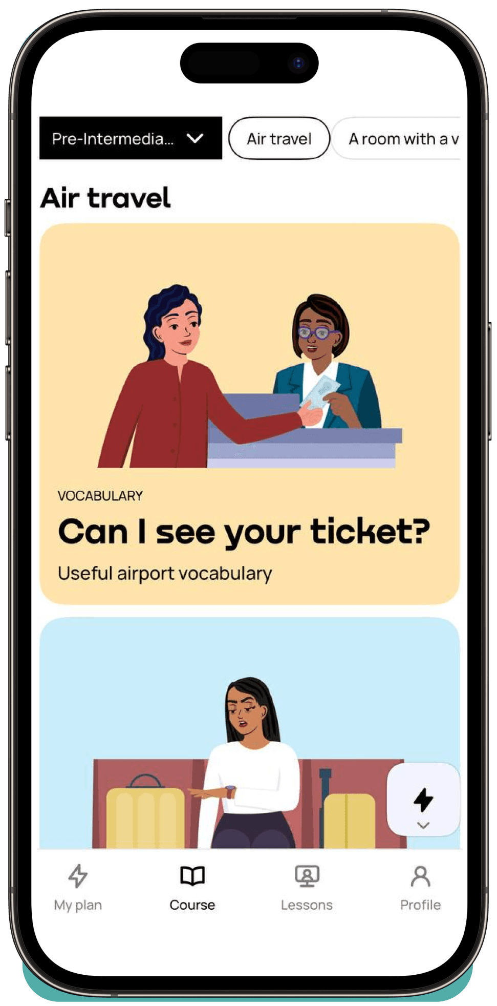 Yes, our self-study platform allows employees to learn at their own convenience. For example, they can spend 10 minutes during a coffee break, 30 minutes during their commute, or 1 hour after work. They decide how much time to invest, when to study, and which topics or skills to focus on, whether it’s improving their vocabulary, grammar, writing, listening, or speaking skills.